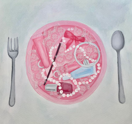 My work traces the evolution of "girlhood" and what it means to grow up under the weight of expectation. It explores the shaping of young girls: the soft demands to be sweet and ladylike, the quiet rules about how to speak, sit, smile. I reflect on how these early lessons echo into womanhood. Beneath the surface of growing up is a constant negotiation: between who the world says we should be, and who we’re becoming.